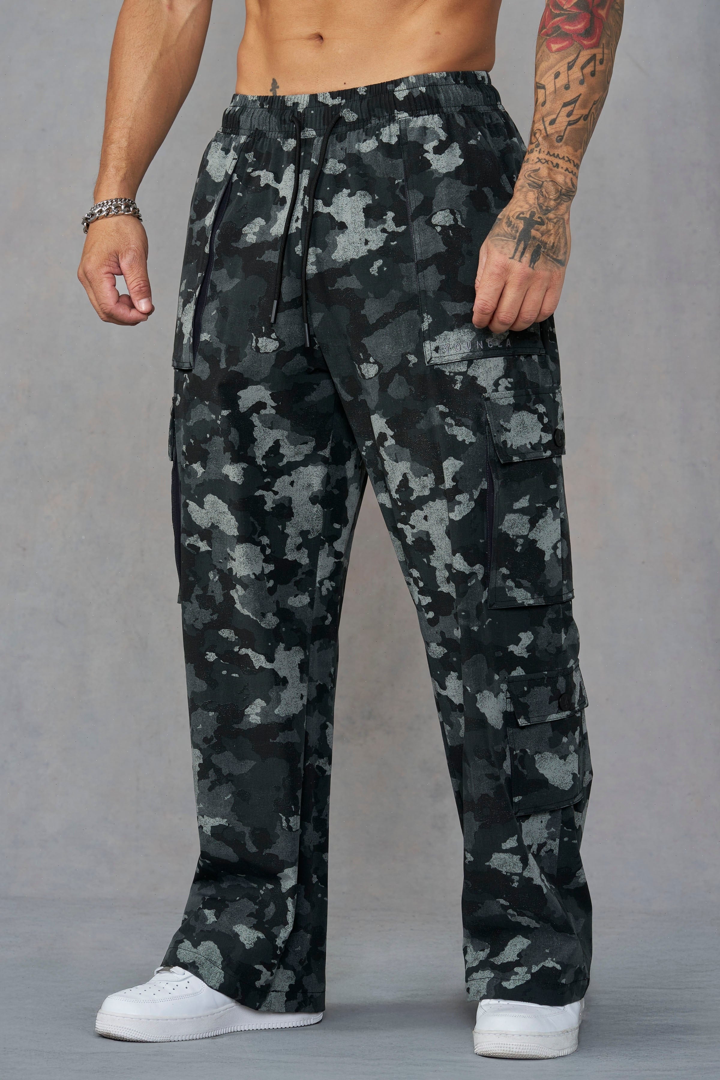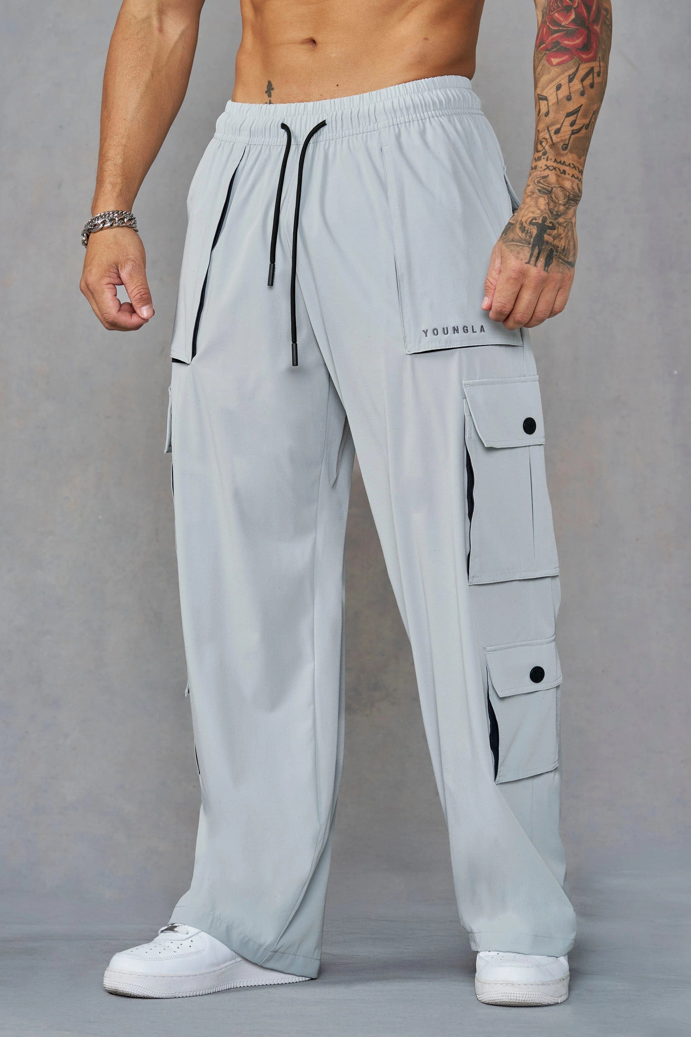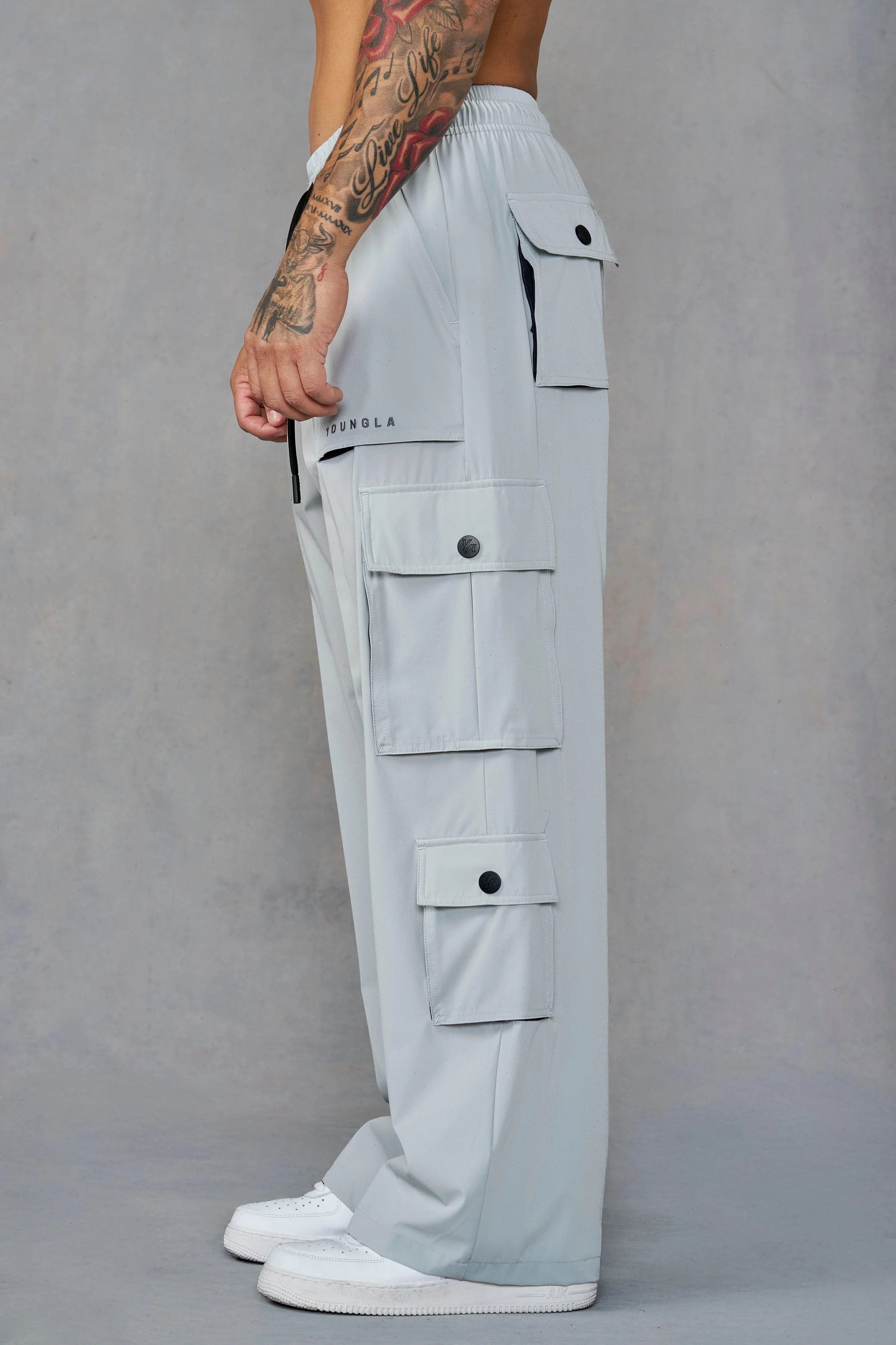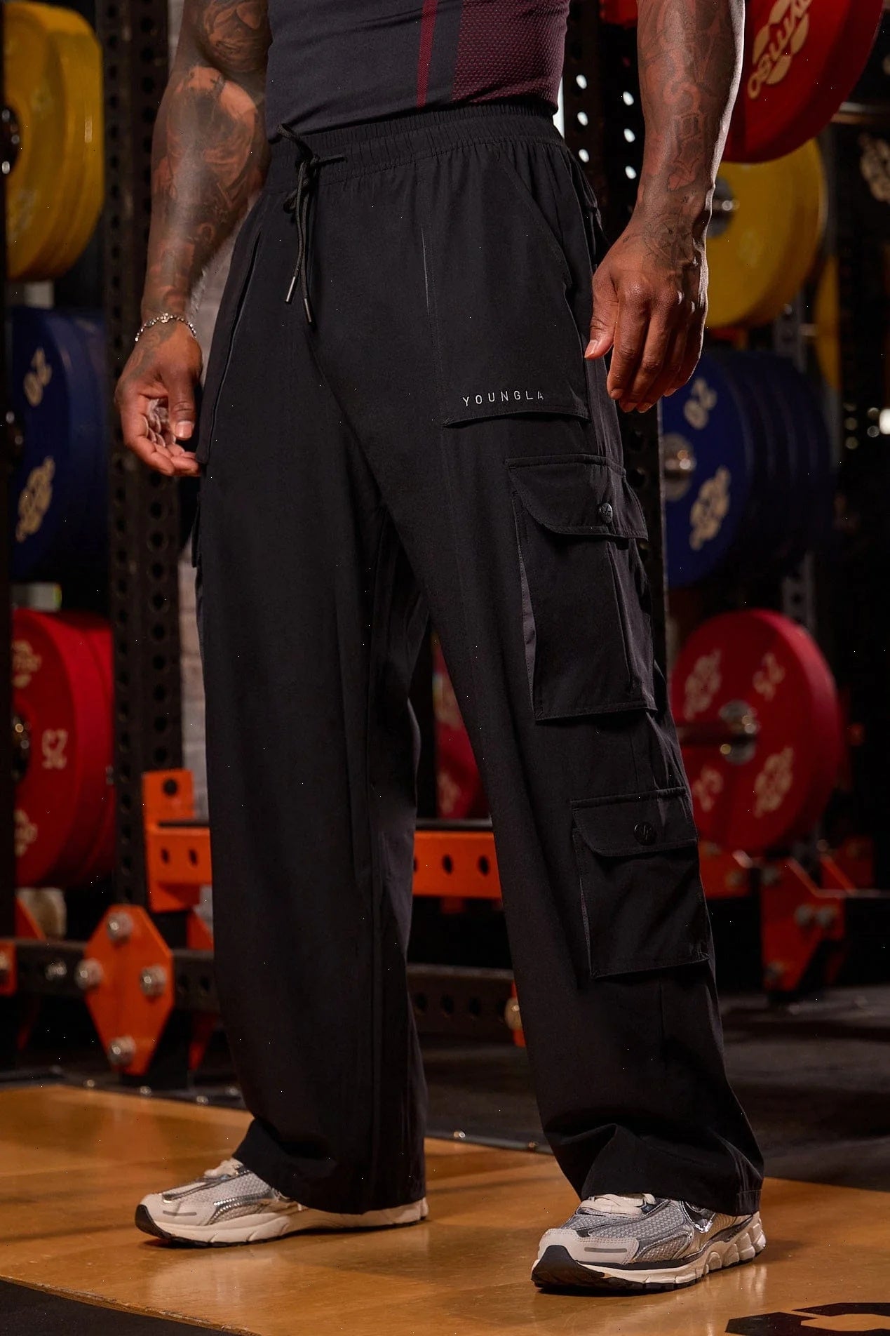 DESIGN: Lightweight, stretchy baggy cargos built for training and daily rotation. They breathe, move, and dry fast. With utility pocketing and a relaxed drape that keeps things effortless, they are perfect for lifting, lounging, or anything in between.