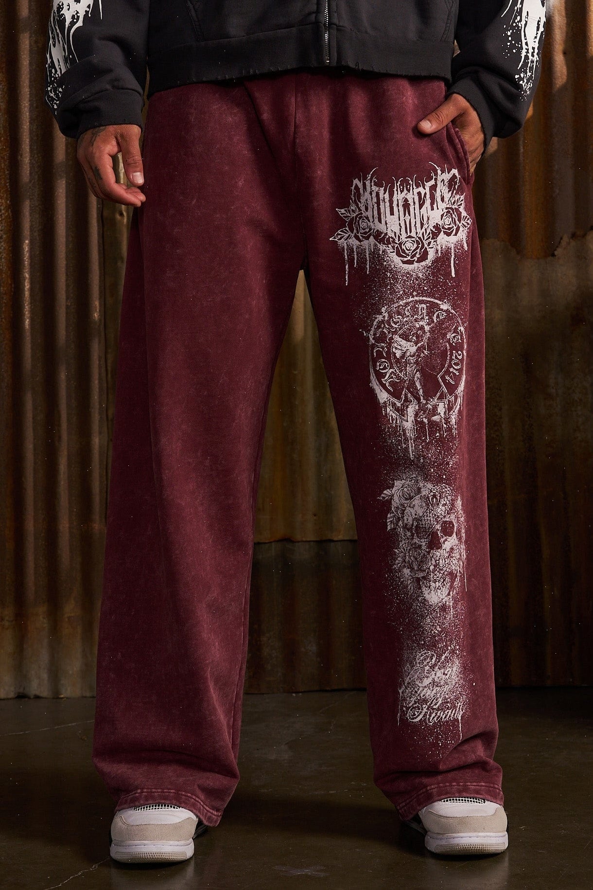 DESIGN: Inspired by the classic Immortal Joggers, the Dynasty Sweats bring a fresh twist with a modern, no-cuff baggy fit. Made from 100% premium cotton with an acid-washed finish, these joggers feature a bold distressed and splatter print down one leg for a unique look.