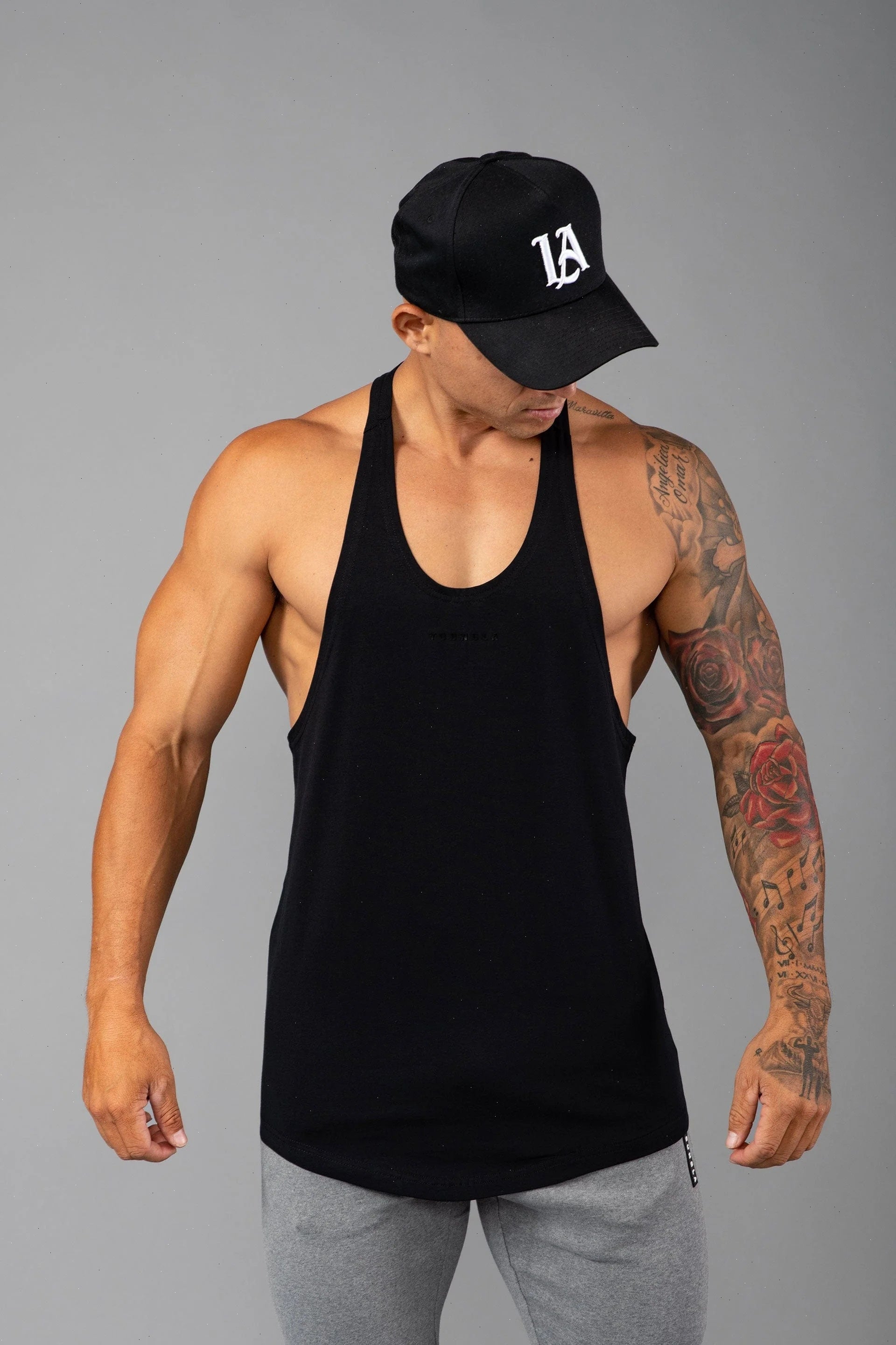 DESIGN: The best YoungLA stringers to date. The cut and fit are contoured to sit perfectly on your physique, racerback cut with scooped bottom and finished with the same tone high-density rubber logo on the chest.