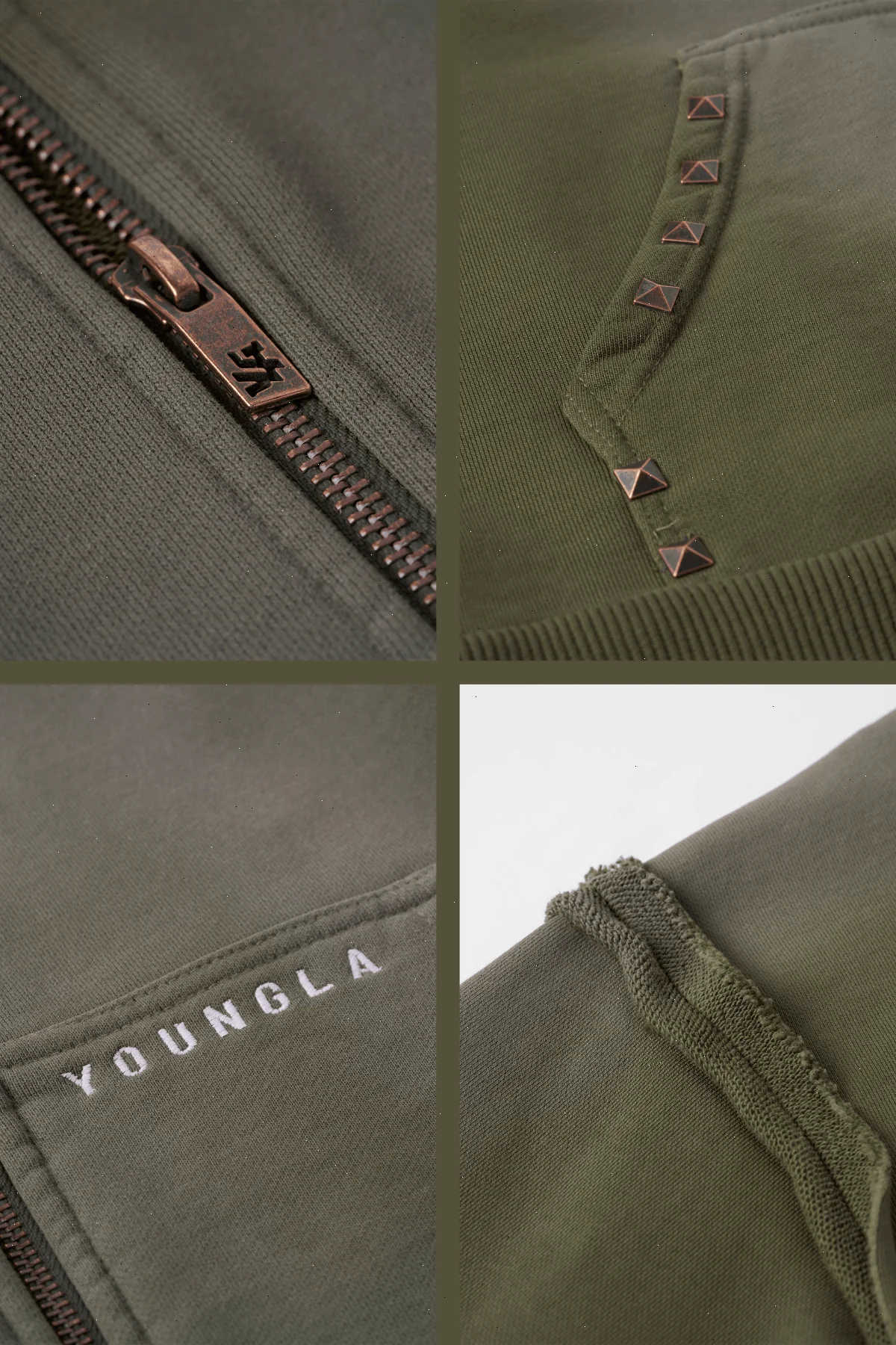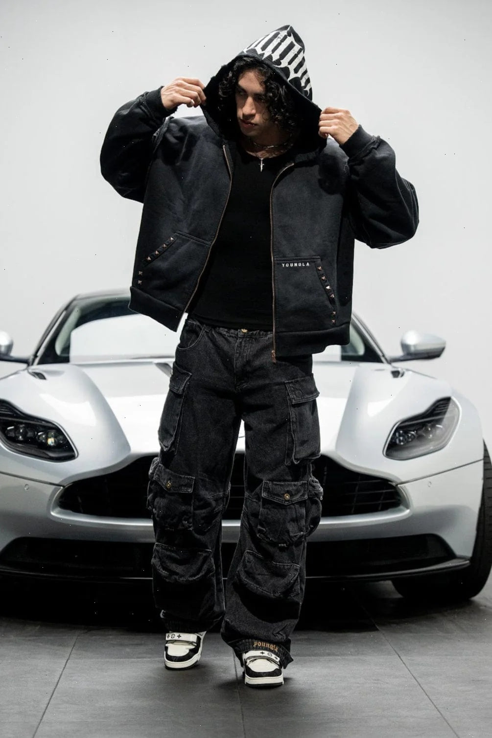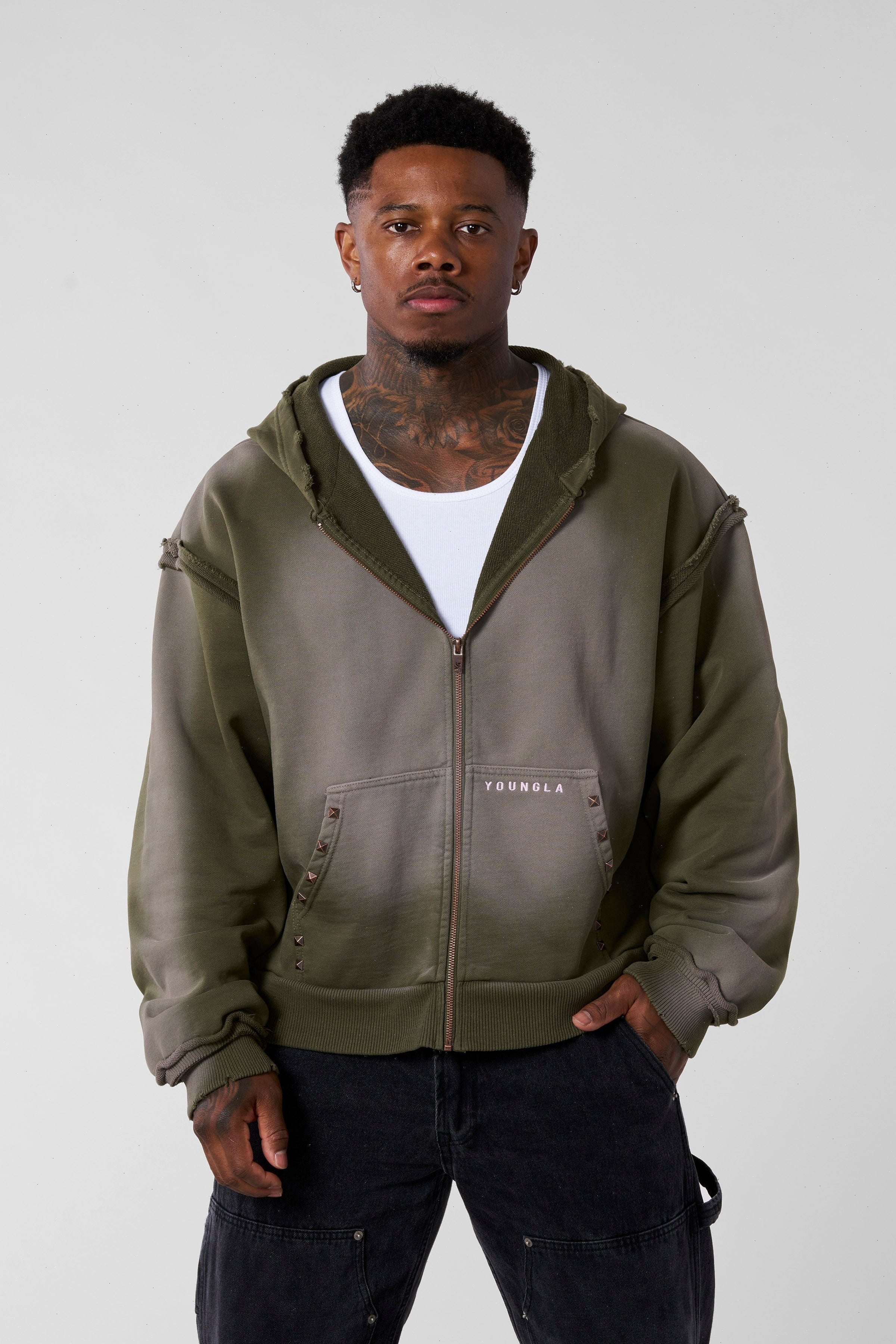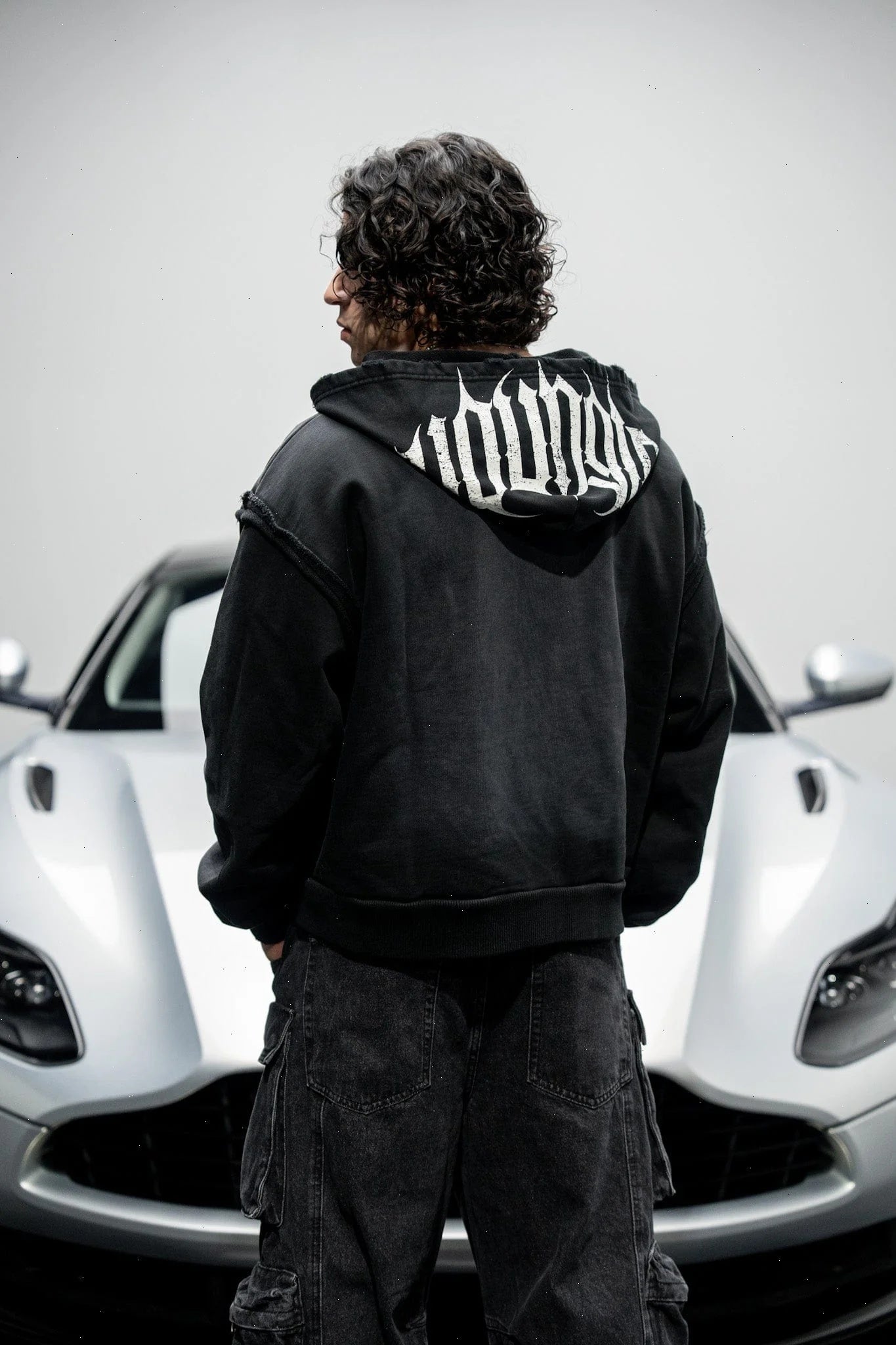 DESIGN: The Deconstructed Terry Hoodie is a bold blend of raw aesthetics and premium craftsmanship. Made from 620 GSM heavy French Terry, its 100% cotton build offers structure and comfort. Raw seams and studs on the pocket add an edgy, unfinished look, while the washed effect enhances its vintage appeal.