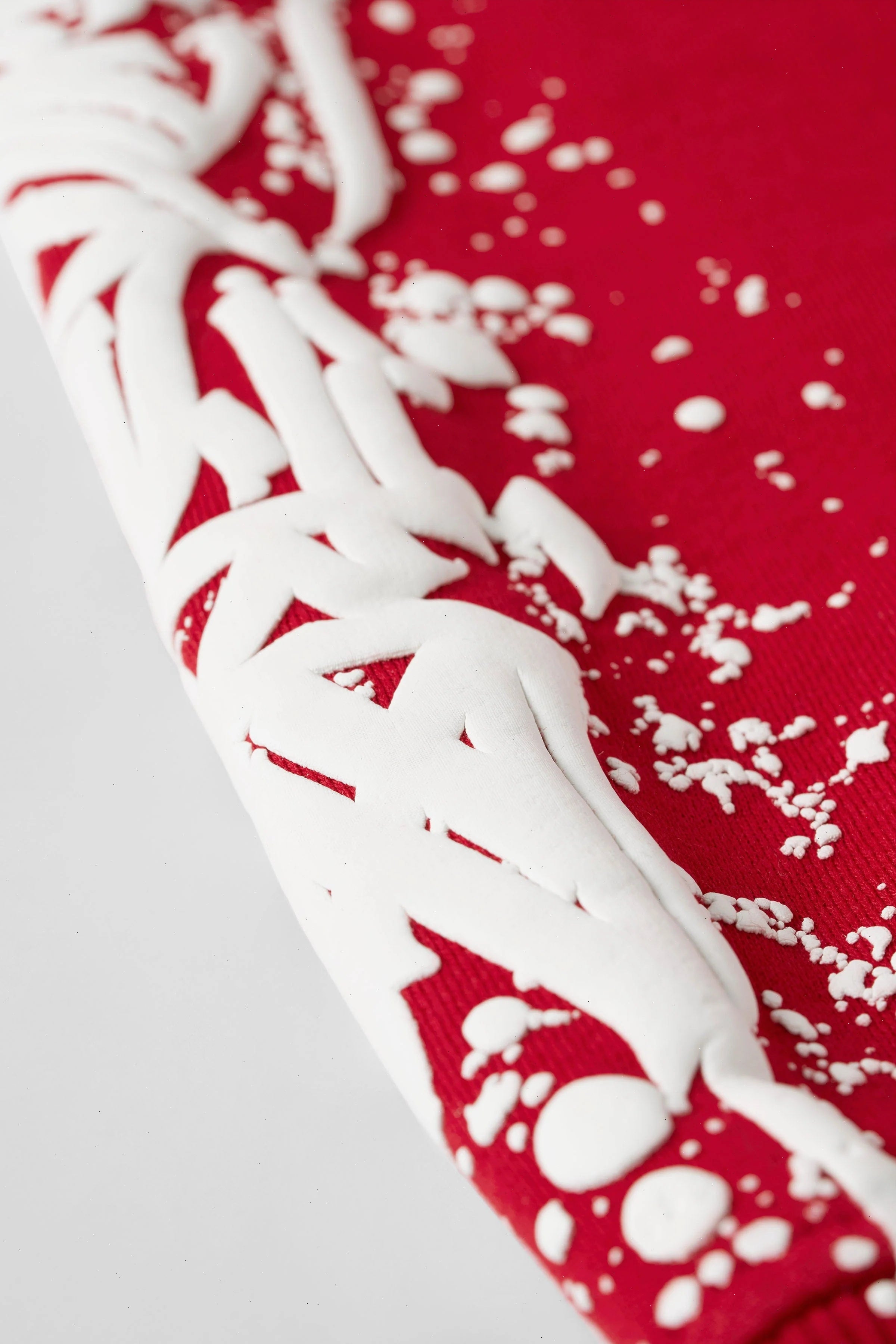 DESIGN: Make a statement with the Cyclone Hoodie. Featuring a striking puff-print graphic on the back resembling a whirlwind, this hoodie is a standout piece. The puff-printed sleeve details add to its dynamic, eye-catching design, making it truly one of a kind.