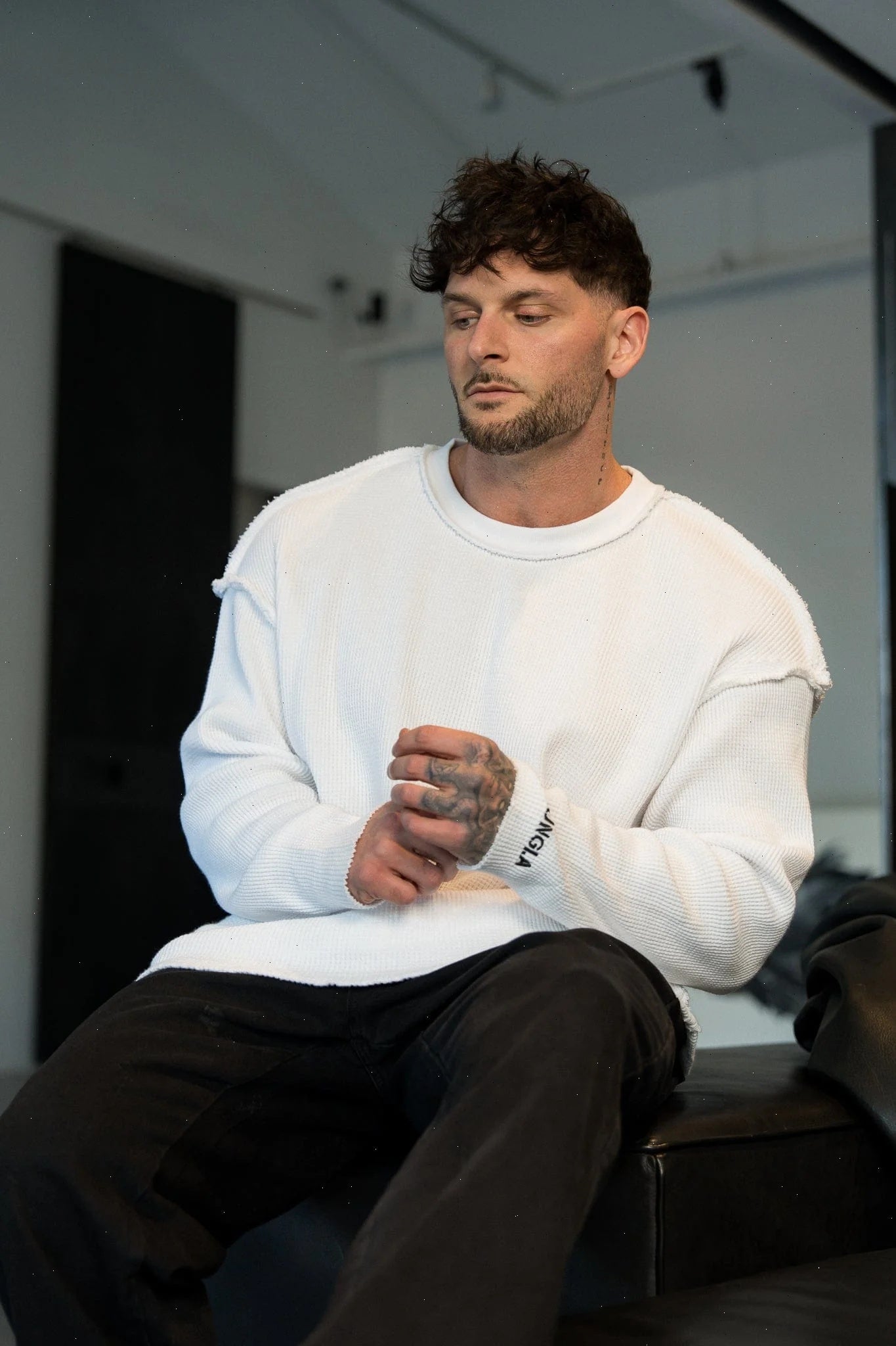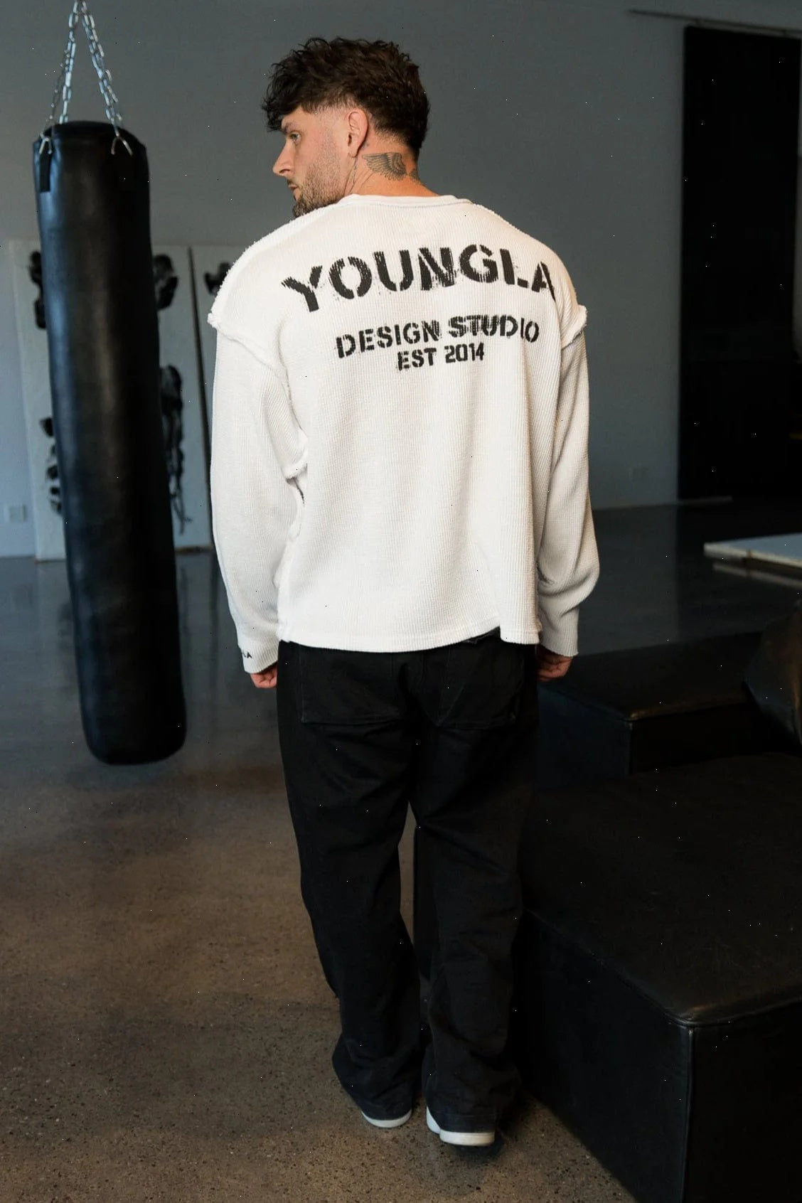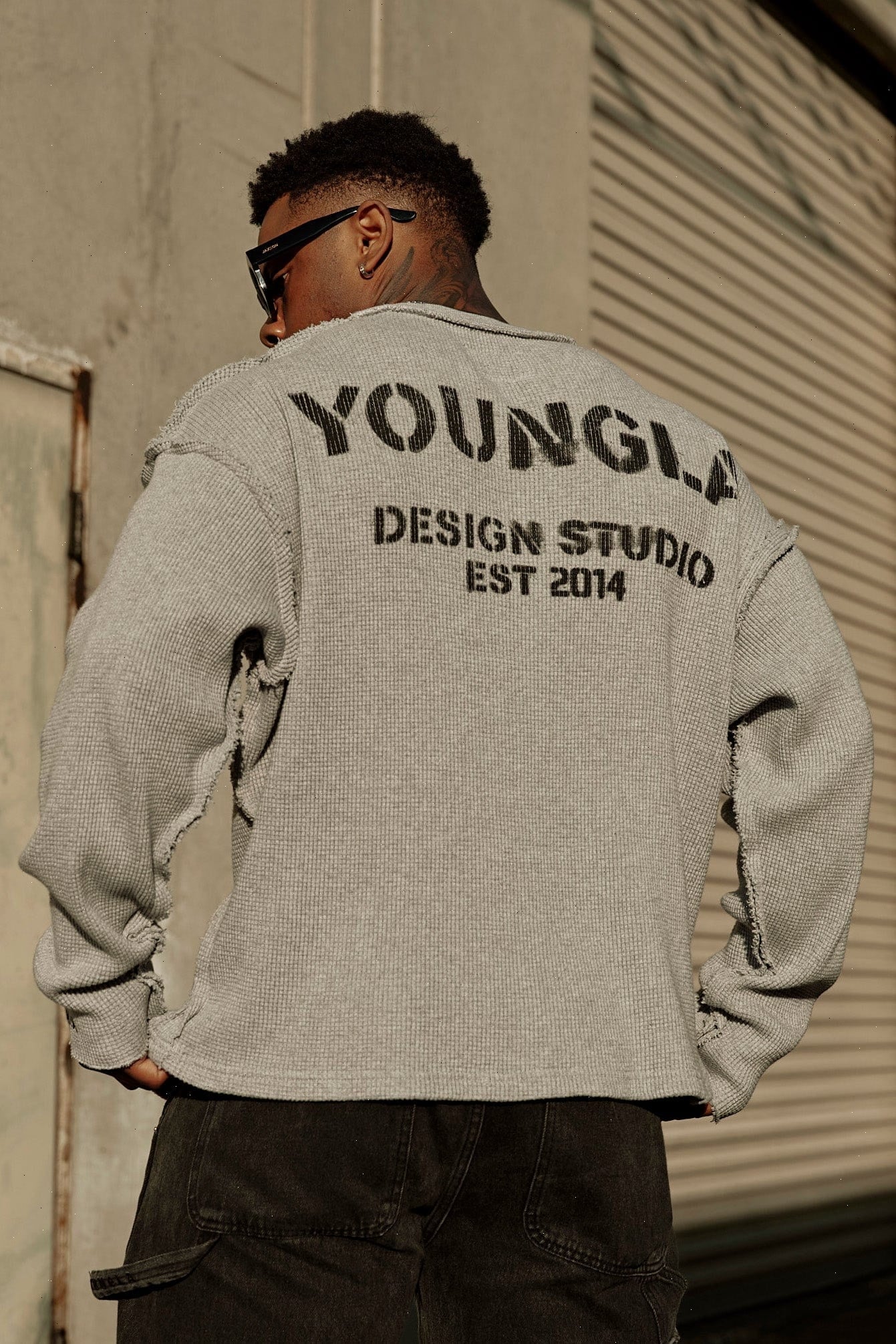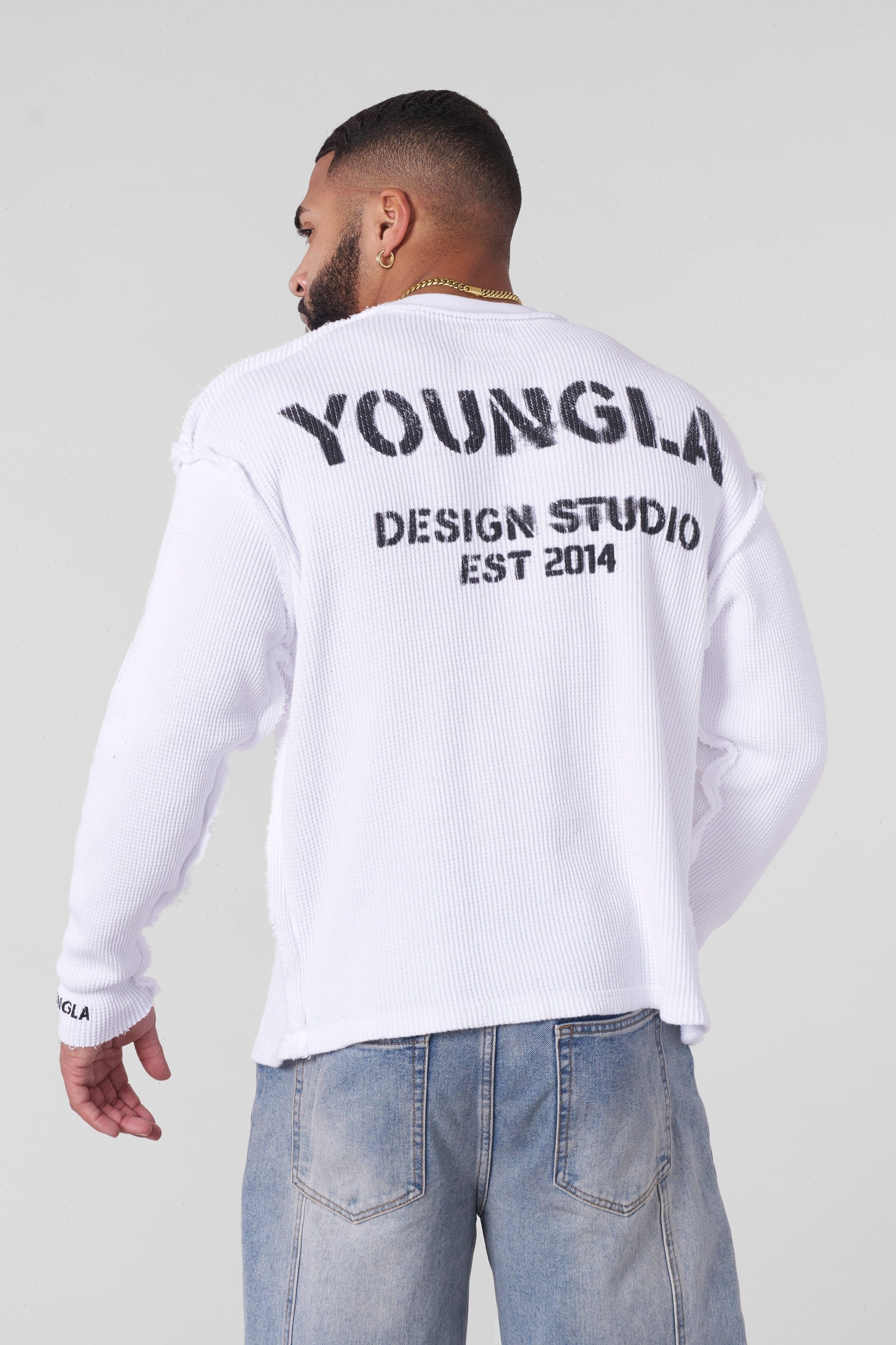 DESIGN: The Deconstructed Stencil Thermal Longsleeve is a bold fusion of rugged design and vintage aesthetics. Crafted from 100% cotton with a heavyweight 420 GSM fabric, this piece offers both warmth and durability. The washed fabric treatment gives it a naturally worn-in, vintage look, while the raw, exposed seams add to its deconstructed, unfinished appeal.