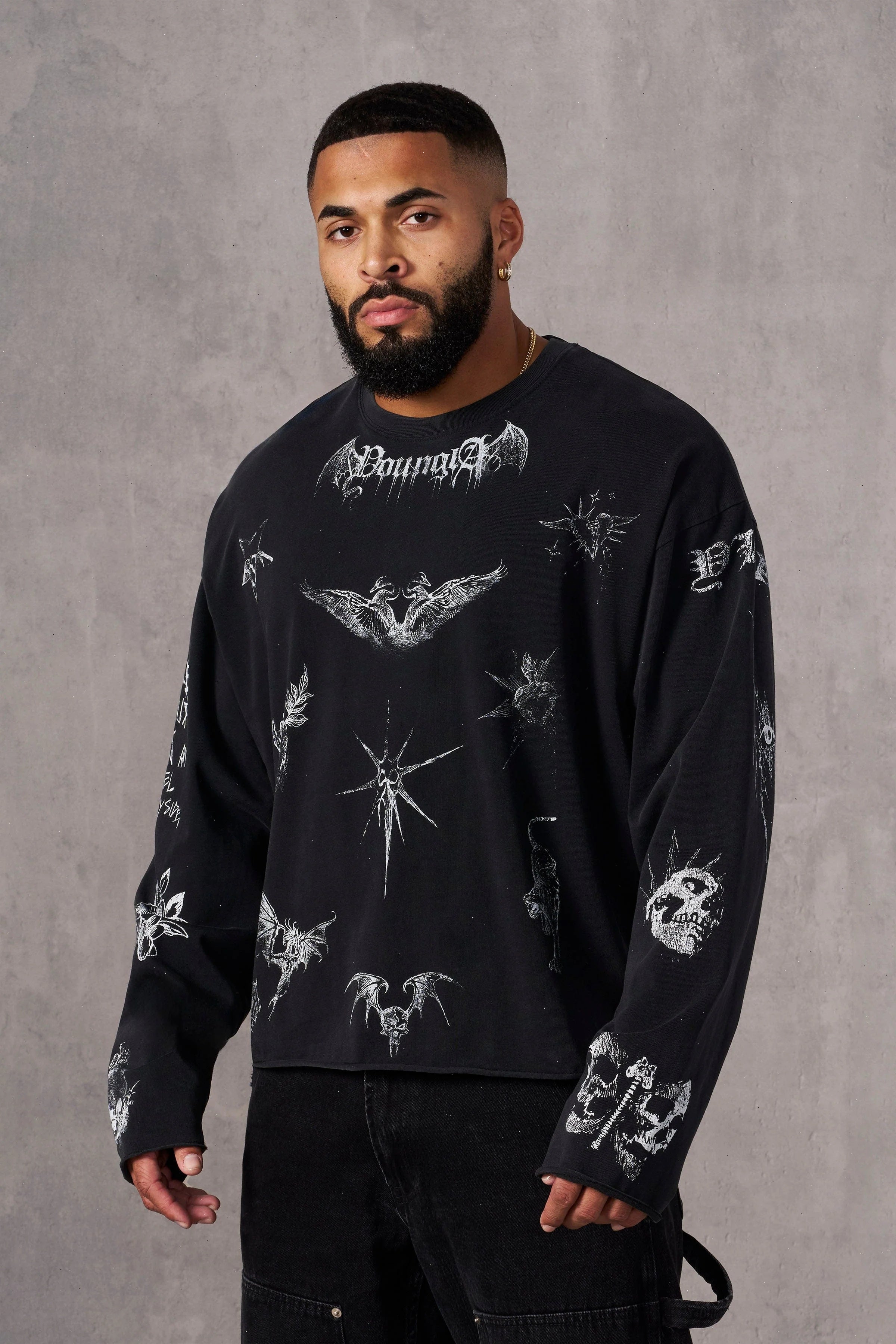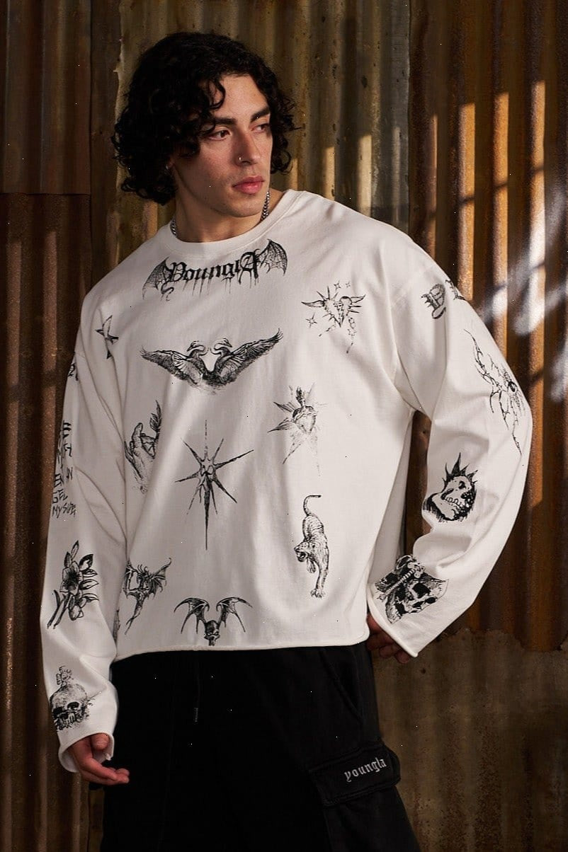 DESIGN: The Inked Long Sleeve is a fusion of art and style, with tattoo-inspired graphics that tell a story. Made from comfortable cotton with raw-cut edges, this tee is as bold as it is unique, covered in sketch-like details on both body and sleeves.