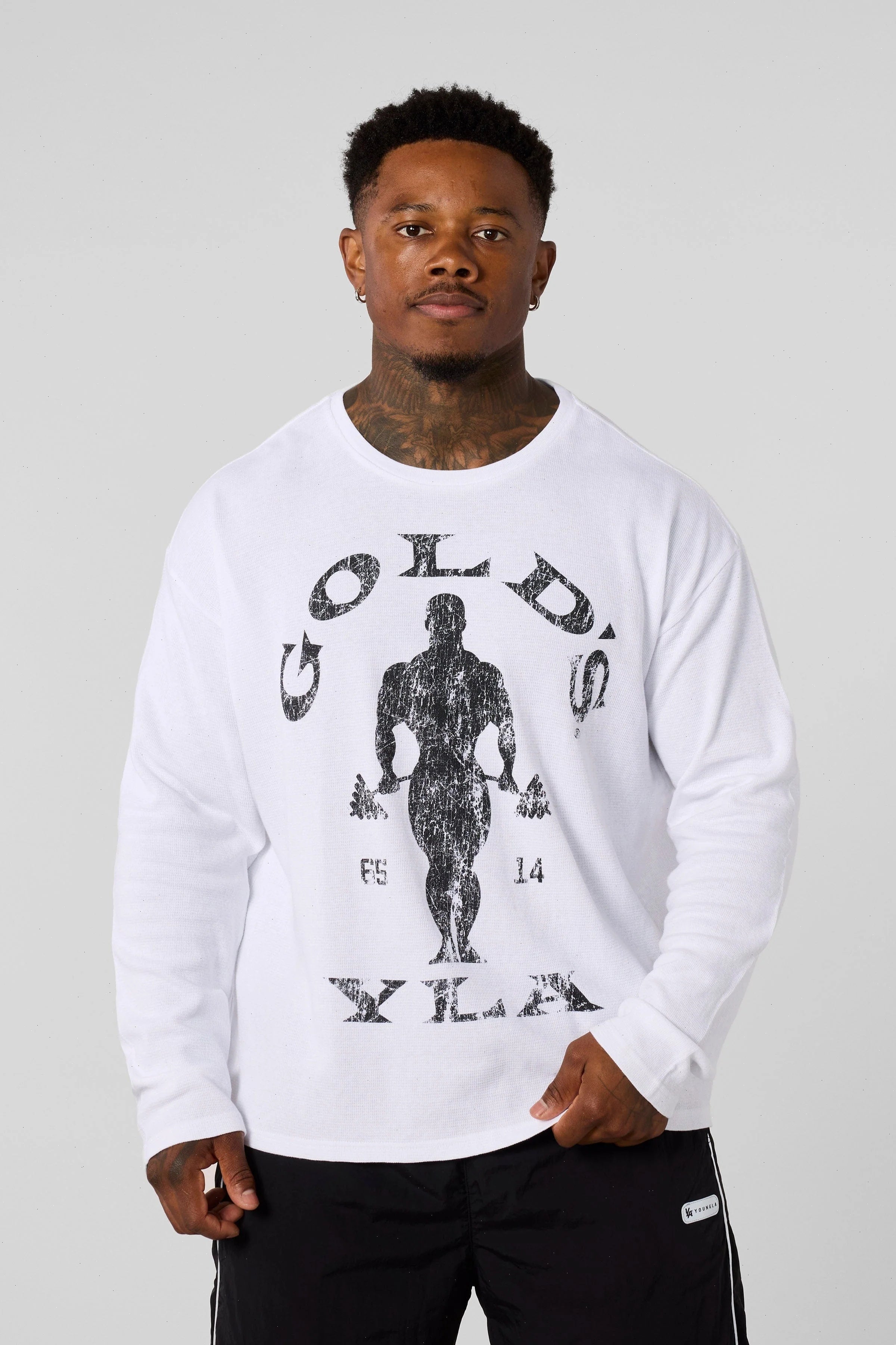 DESIGN: Part of the exclusive Gold’s Gym collaboration, this thermal long sleeve is designed for warmth, comfort, and performance. The true-to-size fit delivers a clean, athletic silhouette, while the soft, breathable fabric keeps you comfortable during workouts or layering. Minimal detailing and classic styling make it versatile for both training and casual wear. Built to perform and made to last, it’s a go-to piece for your rotation.