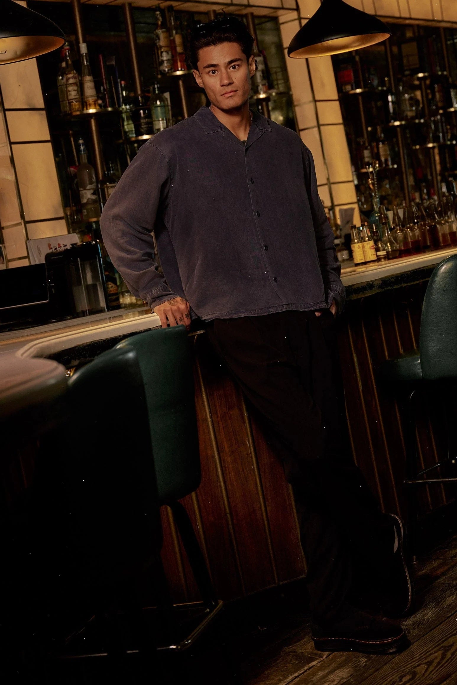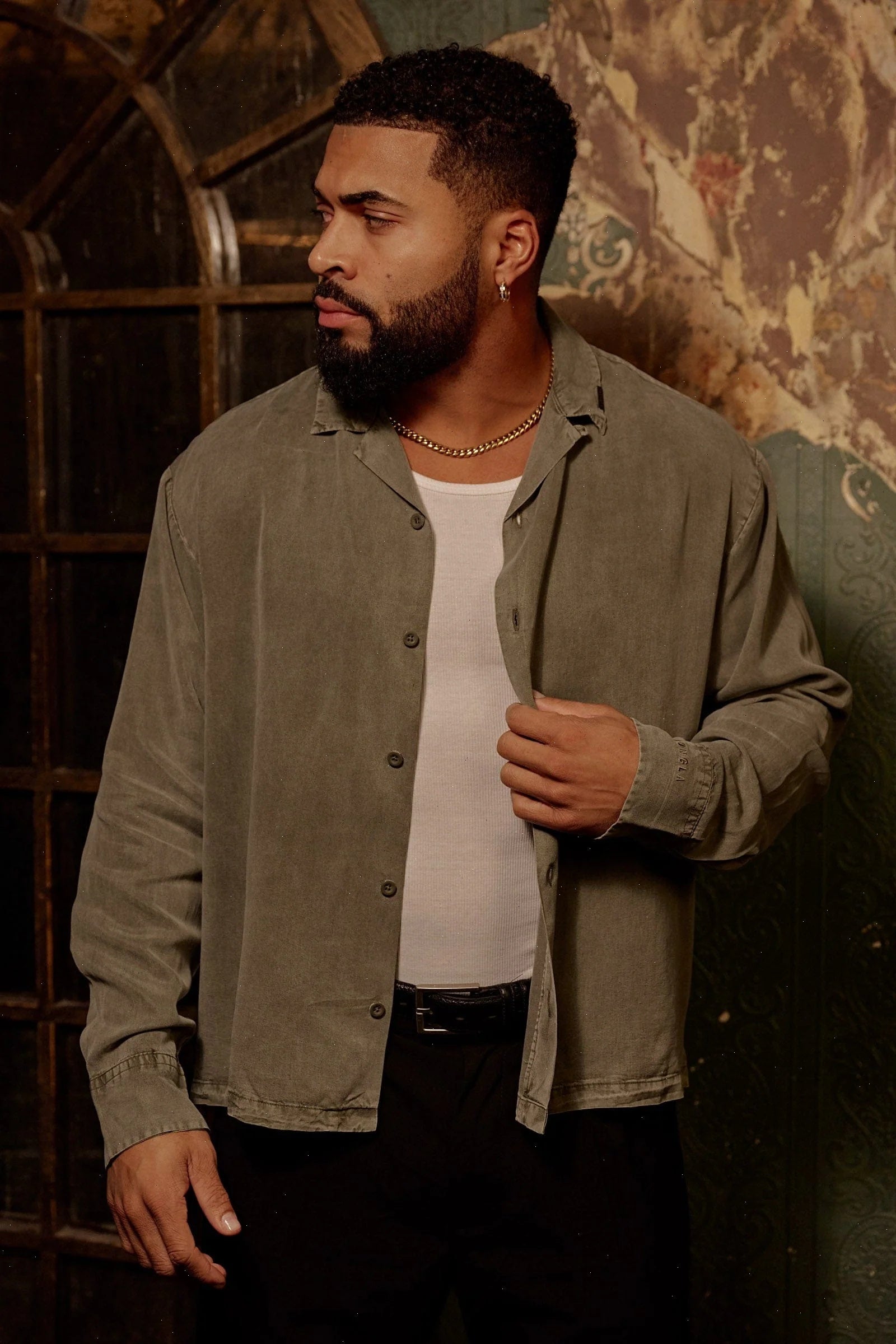 DESIGN: A lightweight, drapey button-up designed for maximum comfort and movement. Made from soft lyocell fabric that hangs naturally and delivers a smooth, breathable feel. The loose fit, dropped shoulders, and relaxed sleeves create an effortless silhouette that works open or buttoned. Finished with a washed effect across all colors for a lived-in tone, plus subtle stitching details at the cuffs and hem.