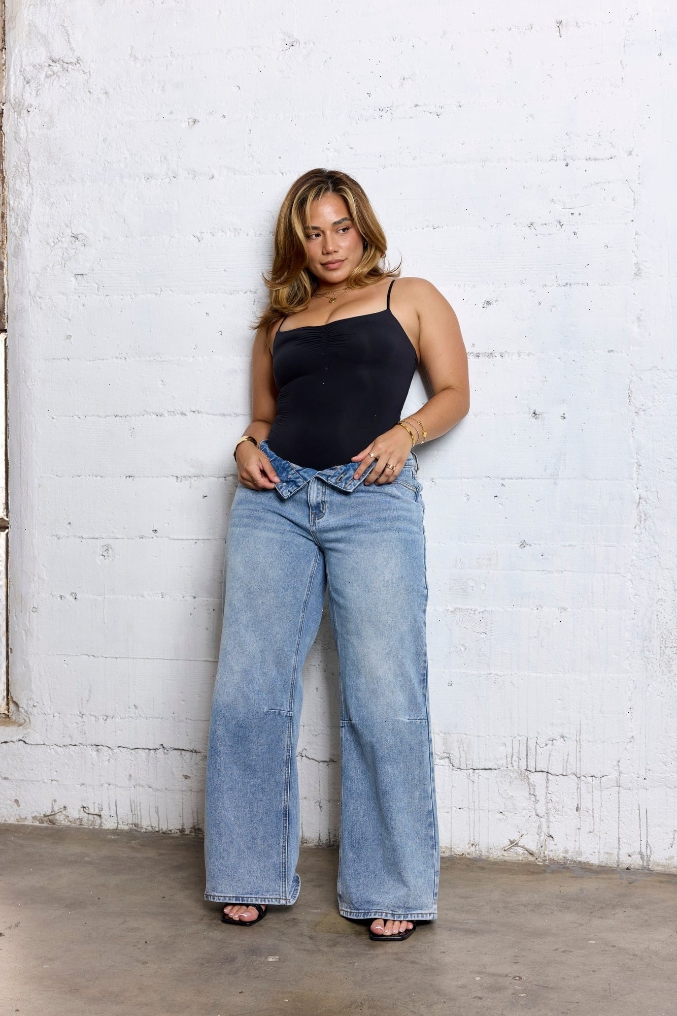 MODEL: Height 5'5", bust 34.5", waist 26.5", hip 38.5", wears size Small.