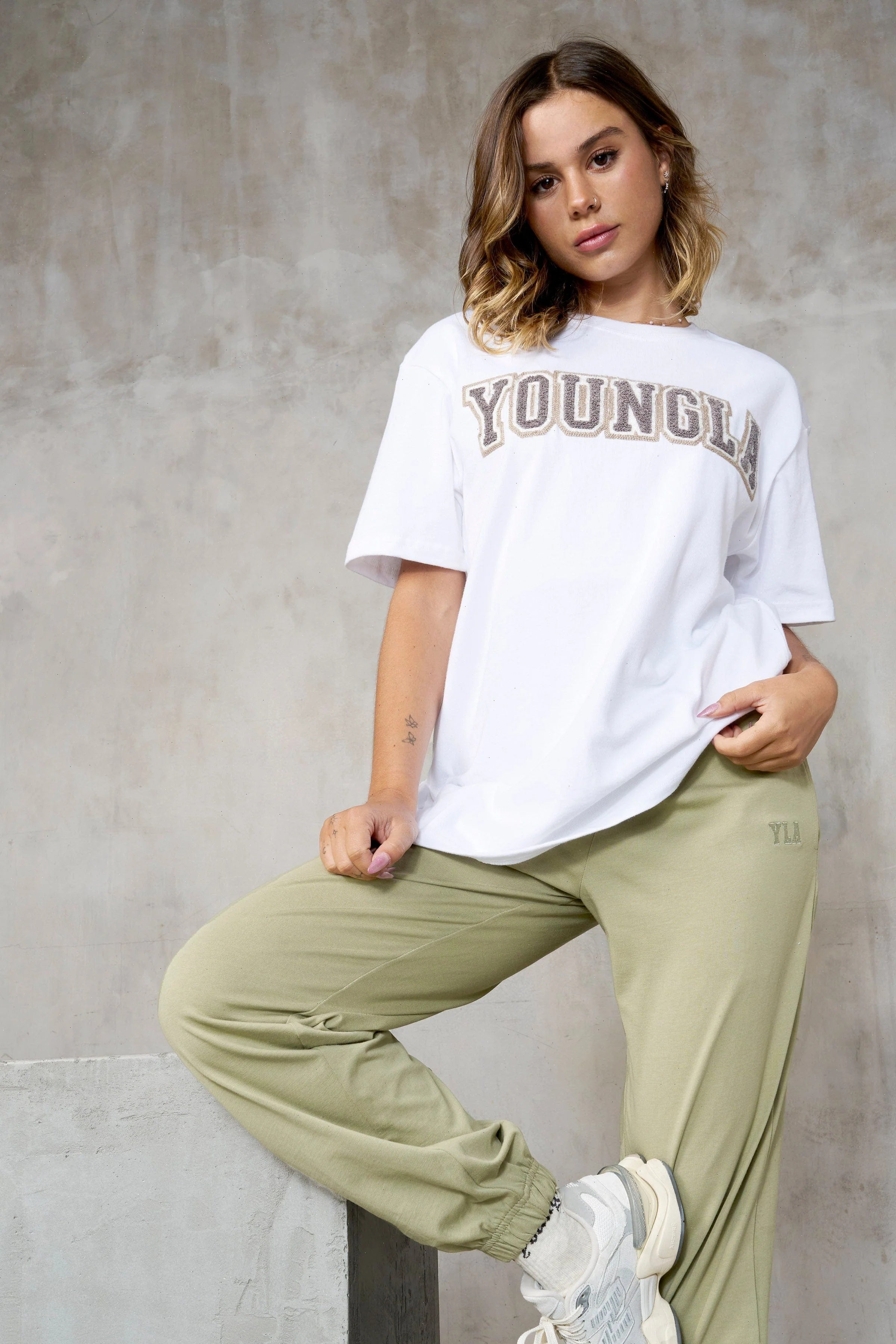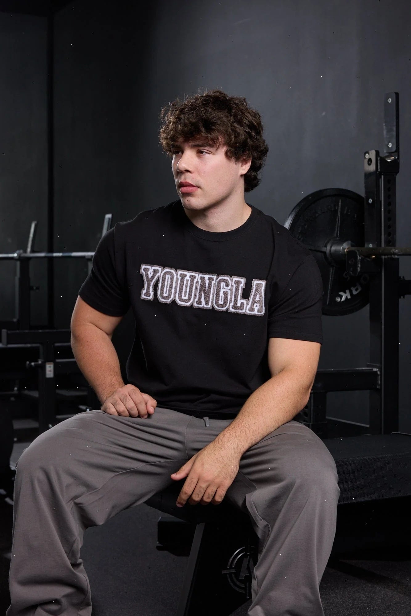 DESIGN: Show off your style with our Varsity Pump Cover Tee. Featuring a classic varsity design with a textured chenille patch logo, this tee combines comfort and trendiness. Perfect for gym sessions or casual wear, it offers a relaxed fit and soft fabric for all-day comfort. Make a statement with this unique and stylish tee.