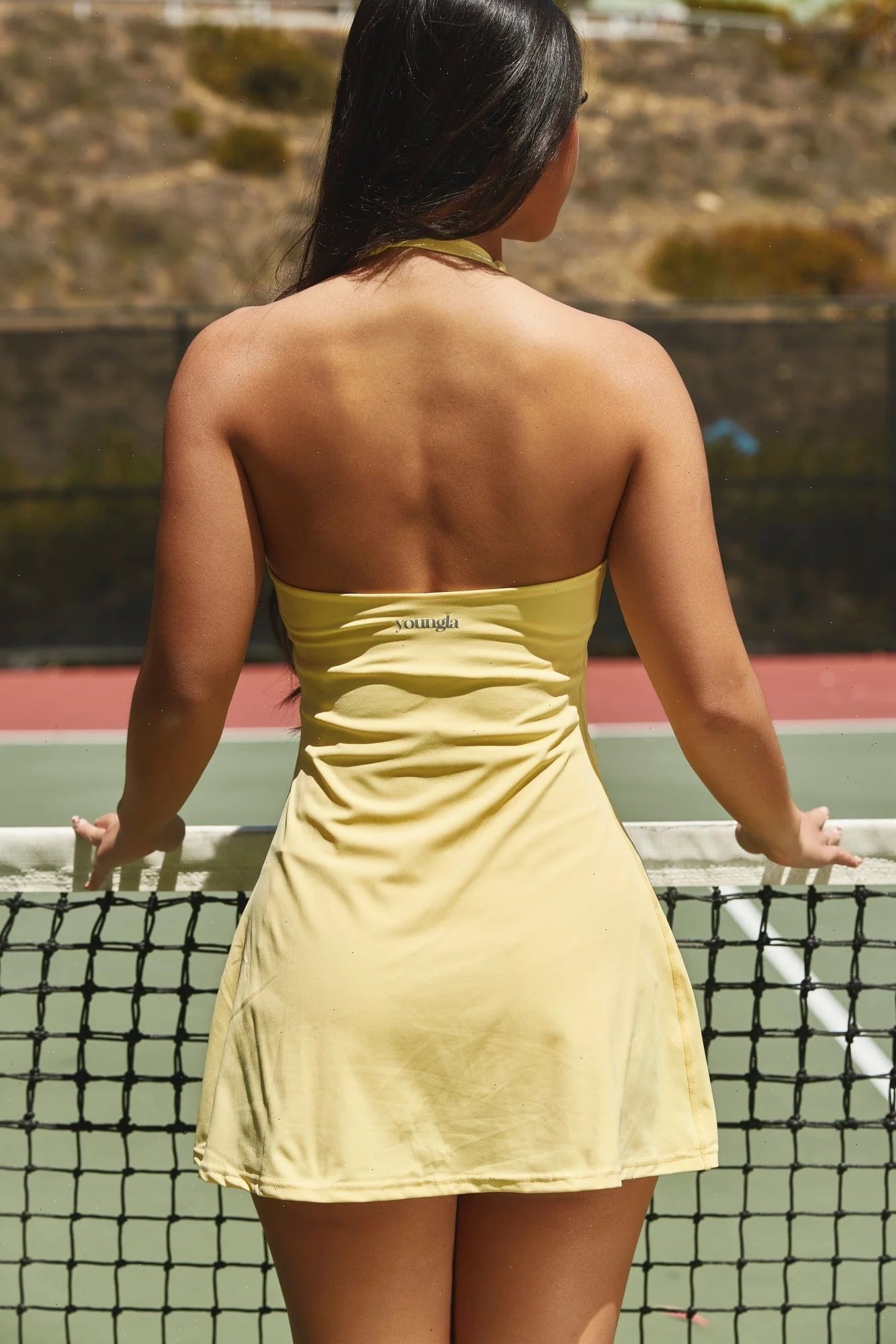 DESIGN: This dress is crafted from smooth, compressive fabric that hugs your curves with medium-impact support. It features a flattering V-neck, an adjustable halter strap, and removable pads for customizable coverage. Built-in shorts with side pockets bring practicality to the polished look, making it perfect for on-the-go days.